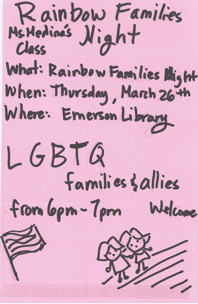 Thursday, March 26: Rainbow Family Night- 6:00-7:00 pm (Emerson Library)